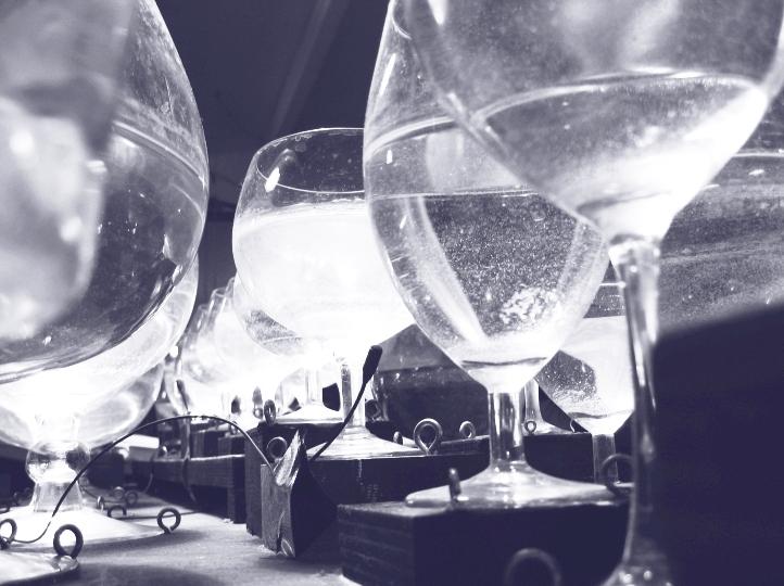 Ihr Klang wird durch Trinkgläser erzeugt, die mit Wasser gestimmt werden.